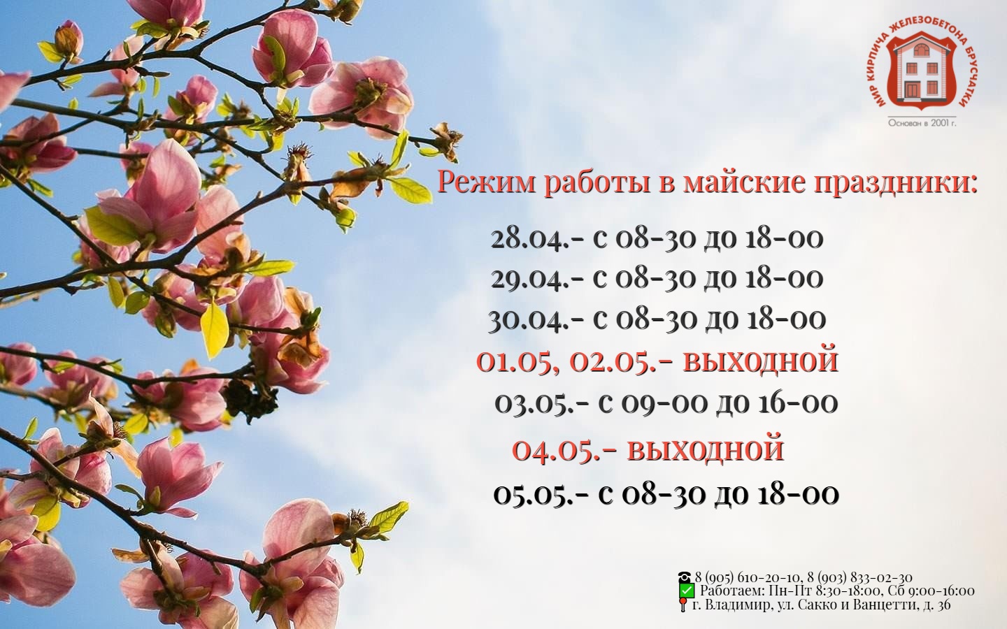Режим работы в майские праздники
